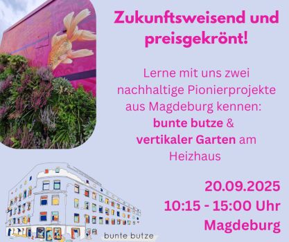 Die Tour beginnt mit einer Besichtigung der "bunten butze", die 2025 als erstes CO₂-neutrales Mehrfamilienhaus den Umweltpreis des Landes Sachsen-Anhalt erhielt. Falk Lepie, einer der Initiatoren des Projekts, wird den Teilnehmenden die ökologische Sanierung des Bestandsbaus erläutern und aufzeigen, wie hier sozialer und günstiger Wohnraum mit modernsten Umweltstandards verbunden wurde. Der Fokus liegt auf den eingesetzten Technologien, nachhaltigen Baustoffen und den Herausforderungen, die während der Realisierung gemeistert werden mussten.