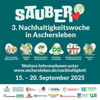 Vereine und Initiativen, Privatpersonen, Kommunen oder Unternehmen in Sachsen-Anhalt - alle, die sich für ein ökologisches, faires und friedliches Leben engagieren, können sich an der Nachhaltigkeitswoche zwischen dem 18.09. und 08.10.2025 beteiligen. Fragen an agenda@kosa21.de oder sofort eine eigene Aktion anmelden.