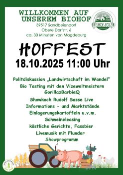 Neben einem bunten Festprogramm mit Einblicken in die ökologische Landwirtschaft möchten wir den Tag nutzen, um im Rahmen eines politischen Forums über ein zentrales Zukunftsthema ins Gespräch zu kommen: