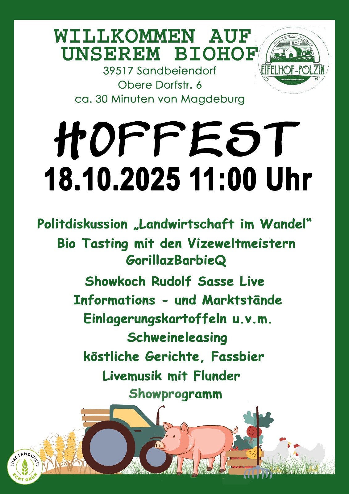 Neben einem bunten Festprogramm mit Einblicken in die ökologische Landwirtschaft möchten wir den Tag nutzen, um im Rahmen eines politischen Forums über ein zentrales Zukunftsthema ins Gespräch zu kommen: